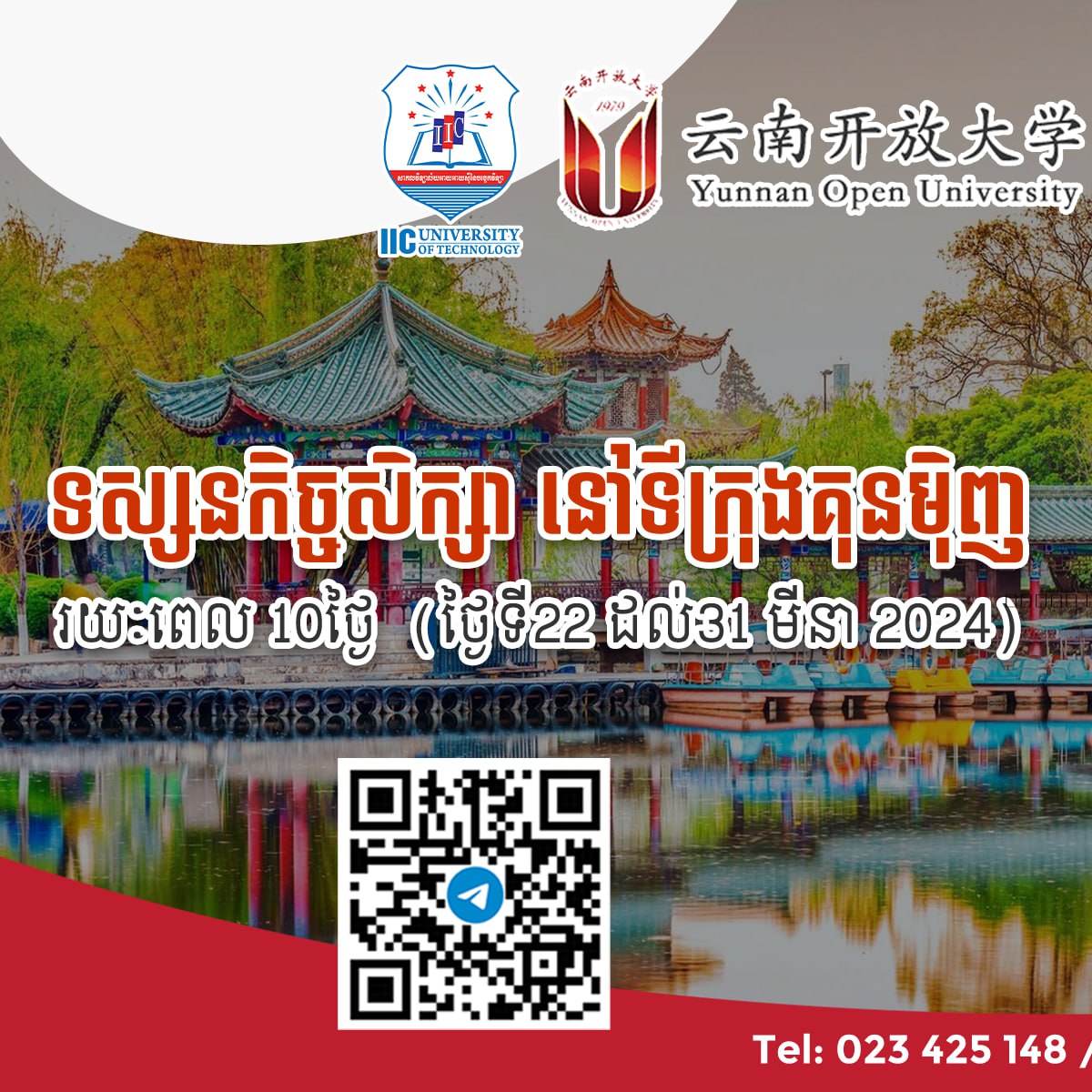 The short-term study tour to Kunming is a joint initiative by the IIC University of Technology and Yunnan Open University (YNOU). The tour will last for 10 days, from March 22 to March 31, 2024.